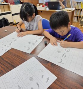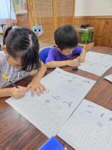 鉛筆をしっかりと持って、まずは線の練習から始まり、