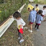 途中で、どんぐりやバッタを見つけて大喜び🎵