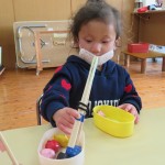 今日はぱんだ組で箸遊びとストロー遊びをしました。